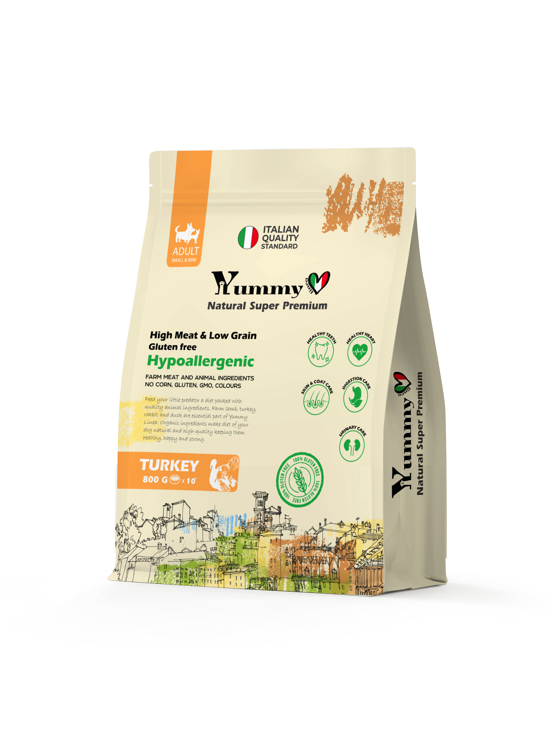 Yummy Linea представляет превосходный сухой корм для взрослых собак мелких пород с индейкой — идеальное решение для заботливых владельцев маленьких питомцев. Этот супер-премиум корм разработан специально для удовлетворения всех потребностей миниатюрных четвероногих друзей, обеспечивая их сбалансированным и полноценным питанием.